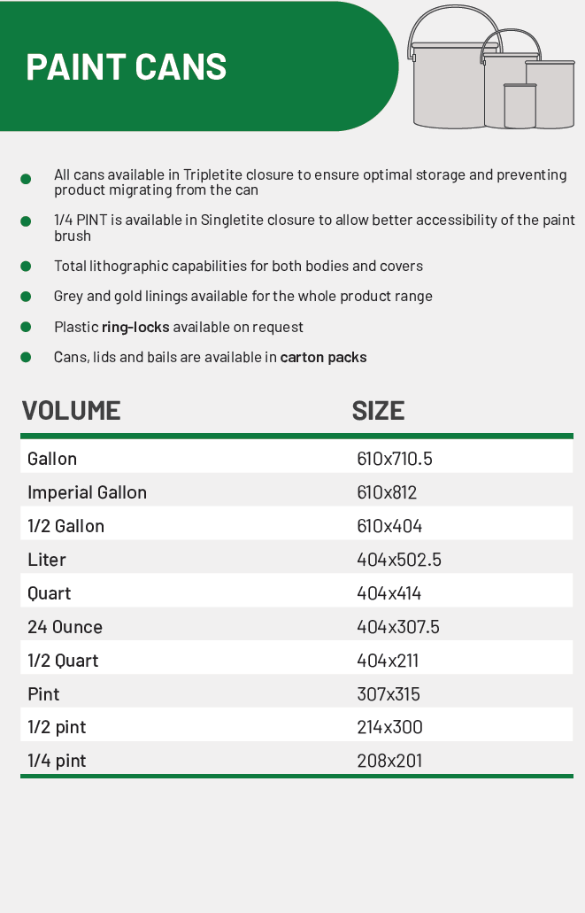 La produzione Fanti USA di un’ampia gamma di barattoli in metallo per le vernici e per il settore chimico vanta tutta l’esperienza e la qualità che Fanti Packaging ha sviluppato e consolidato in oltre 70 anni di presenza nei principali mercati internazionali.